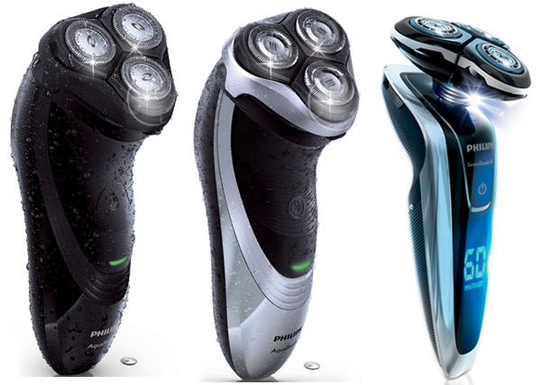 No Brasil, a Philips é a principal fabricante de barbeadores elétricos e conta com 3 modelos (da esquerda para a direita):